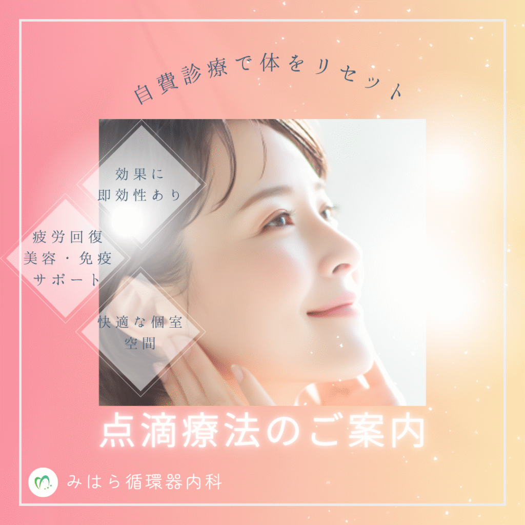 循環器診療をはじめ、健康診断や生活習慣病の予防・管理、各種点滴療法を通じて、 皆さまの健康を幅広くサポートします。