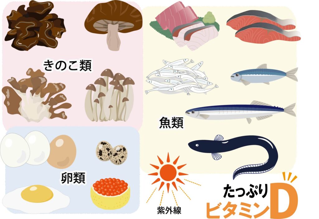 • 食事:ビタミンDが豊富な食材を積極的に取り入れましょう。