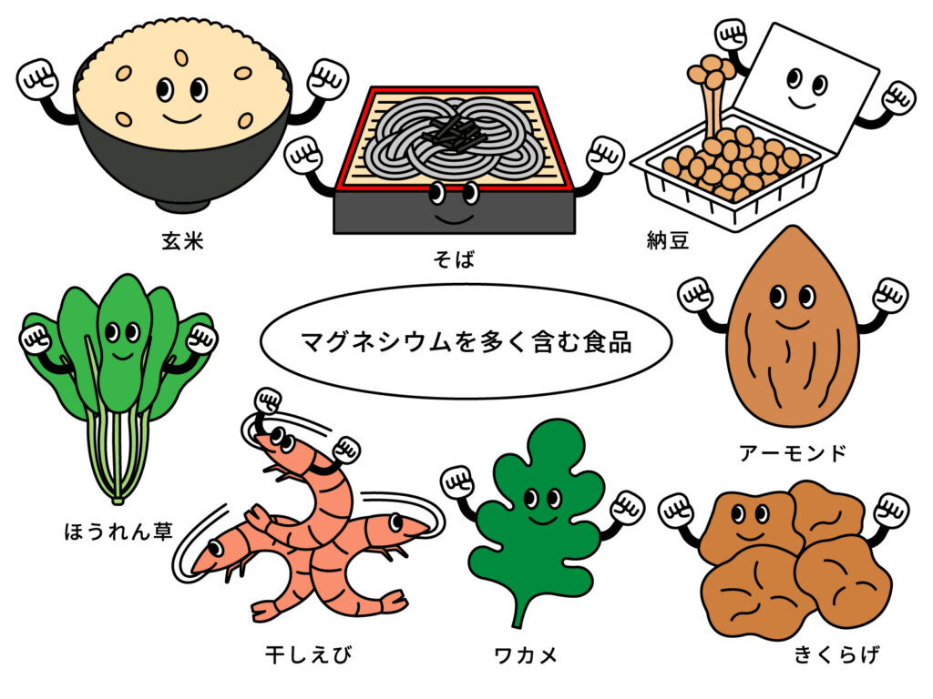 例えば、味噌汁に海藻を加えたり、お蕎麦を食べるときは納豆そばを選ぶとマグネシウムを効率的に摂取できますね。おやつにナッツやダークチョコレートを選ぶのもおすすめです。
