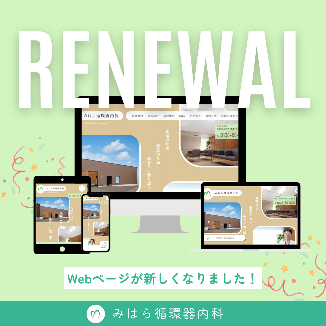 このたび、みはら循環器内科の公式サイトをリニューアルいたしました。スマートフォンからも見やすく、診療内容のご案内やよくある質問(Q&A)、アクセス情報など分かりやすくまとめています。