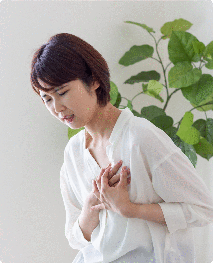 胸の痛みや圧迫感、動悸、息切れ、疲労感などの症状は、心臓や血管に何らかの異常があるサインかもしれません。心筋梗塞や狭心症、不整脈、心不全など、早期の診断が重要な病気に繋がることもあります。特に、胸が締め付けられるような痛みや、冷や汗を伴う症状がある場合は、急を要する可能性があるため、すぐに医療機関へご相談ください。